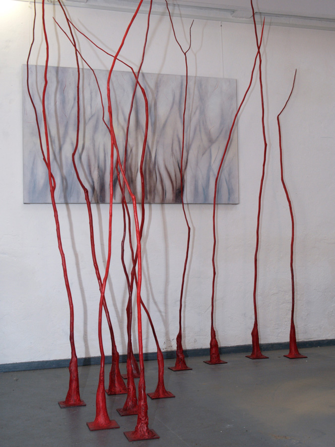 Buchenäste/Eisen/Ton/Acryl, bis 250 cm hoch